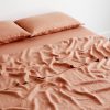 Ultra soft and incredibly durable, our 100% French flax linen flat sheet in Hazelnut is a versatile addition to your collection. Generously sized to just graze the floor, these sheets serve as lightweight covers on their own, or as a luxurious extra layer alongside other linen pieces.